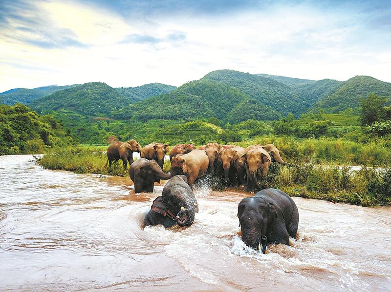 10年来,全国珍稀濒危野生动植物种群数量总体稳中有升,保护成效明显。2021年,15头亚洲象北移南归,生动讲述了人与自然和谐共生的中国故事。云南林草局供图